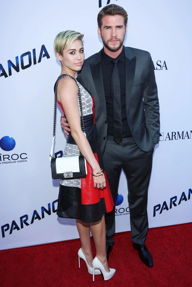 El actor australiano Liam Hemsworth estuvo acompañado de su prometida Miley Cyrus en la alfombra roja de la película Paranoia en Los Ángeles.